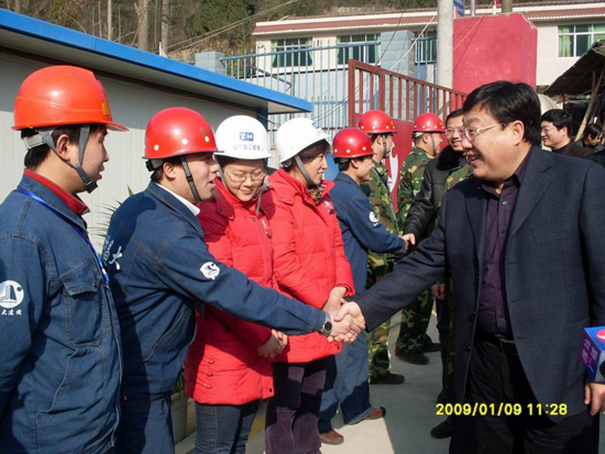 鐘少林視察集團(tuán)公司援川工程慰問現(xiàn)場人員 (09.01.10)