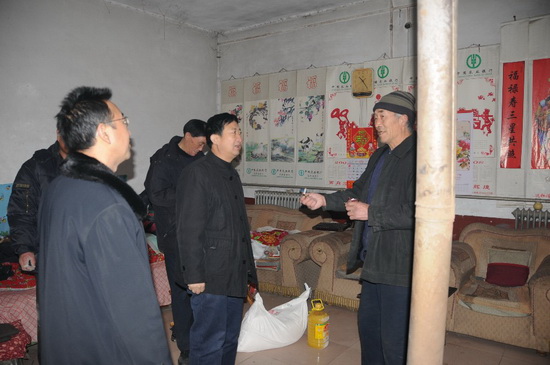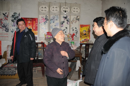 1月18日上午,集團公司監(jiān)事會主席、黨委副書記、紀委書記滕忠斌,副總經(jīng)理兼駐臨朐幫扶領導小組組長穆乃杰,在臨朐城關街辦有關領導及殷家河村兩委領導陪同下,走訪慰問幫扶村的革命家庭、長壽家庭、孤寡家庭及困難家庭等十個家庭戶代表,并送去面粉和食用油,表達集團公司對幫扶村村民的新春祝福和美好祝愿。集團公司總部有關部門、第九分公司有關人員和幫扶領導小組成員參加了走訪慰問活動。 ![]() 走訪孤寡老人 ![]() 走訪革命家屬家庭 ![]() 走訪96歲壽星戶