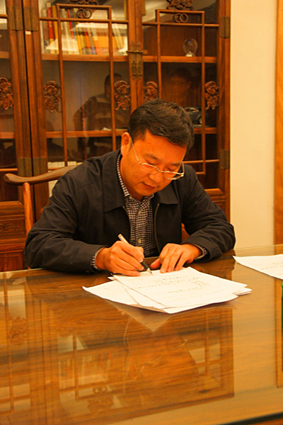 上圖為昌大建設(shè)集團(tuán)董事長(zhǎng)徐鵬強(qiáng)在簽署成立文件
