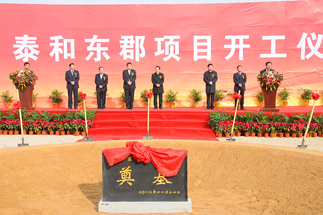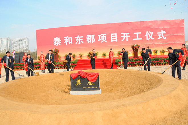 2012年11月20日上午,由集團(tuán)泰和公司開(kāi)發(fā)的“泰和東郡”項(xiàng)目舉行了隆重的開(kāi)工奠基儀式。集團(tuán)高管層領(lǐng)導(dǎo)徐鵬強(qiáng)、李坤明、姜建魯、穆乃杰、張連悅、閆鵬、劉雁冰出席開(kāi)工奠基儀式。出席開(kāi)工奠基儀式并在主席臺(tái)就位的領(lǐng)導(dǎo)和嘉賓有濰坊市委常委、高新區(qū)黨工委書(shū)記、管委會(huì)主任趙志遠(yuǎn),高新區(qū)黨工委副書(shū)記、管委會(huì)副主任陳甲才,高新區(qū)黨工委委員、管委會(huì)副主任兼經(jīng)發(fā)局局長(zhǎng)曲志剛,高新區(qū)黨工委委員、黨政辦公室主任唐偉,集團(tuán)董事長(zhǎng)徐鵬強(qiáng),山東海王銀河醫(yī)藥公司董事長(zhǎng)孔憲俊,集團(tuán)副總經(jīng)理兼泰和公司總經(jīng)理姜建魯。集團(tuán)全體中層以上人員、第四分公司部分管理人員參加了開(kāi)工奠基儀式。開(kāi)工奠基儀式由高新區(qū)黨工委委員、管委會(huì)副主任譚建民主持。