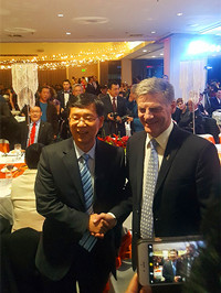 近日,作為山東省經(jīng)貿(mào)洽談代表團(tuán)成員,董事長徐鵬強(qiáng)參加了在新西蘭奧克蘭朗廷酒店舉行的“中國(山東)—新西蘭工商界見面會(huì)”,并得到山東省省長龔正的親切接見。 2017年9月9日晚,提前到達(dá)新西蘭的董事長徐鵬強(qiáng),在集團(tuán)副總經(jīng)理兼昌大國際總經(jīng)理劉雁冰的陪同下,到奧克蘭機(jī)場迎接山東省省長龔正為團(tuán)長的山東經(jīng)貿(mào)洽談代表團(tuán)。 9月10日下午,山東省省長龔正接見了徐鵬強(qiáng)、劉雁冰,山東省商務(wù)廳廳長佘春明、副廳長張維克參加接見。龔正省長認(rèn)真聽取了徐鵬強(qiáng)關(guān)于昌大國際新西蘭公司在奧克蘭的發(fā)展情況、遠(yuǎn)景發(fā)展規(guī)劃及參與“一帶一路”新西蘭基礎(chǔ)設(shè)施投資建設(shè)設(shè)想的匯報(bào),充分肯定了集團(tuán)在新西蘭的投資及在兩國間經(jīng)貿(mào)往來方面的工作,并支持集團(tuán)參與新西蘭的基礎(chǔ)設(shè)施投資建設(shè)。 9月11日上午,董事長徐鵬強(qiáng)及昌大國際董事薛金星、總經(jīng)理劉雁冰受邀出席了“中國(山東?。?新西蘭工商界見面會(huì)”。 在新西蘭期間,董事長徐鵬強(qiáng)還安排了密集的社會(huì)交往和公務(wù)洽談活動(dòng)。其中, 9月8日上午,與昌大國際董事薛金星、總經(jīng)理劉雁冰一起拜會(huì)了中國駐奧克總領(lǐng)事許爾文女士。會(huì)談中,總領(lǐng)事對(duì)昌大國際在新西蘭的發(fā)展表示高度贊賞,并要求昌大國際再接再厲,在新西蘭樹立一個(gè)中國企業(yè)健康發(fā)展的典范。 9月8日晚,新西蘭山東同鄉(xiāng)聯(lián)誼會(huì)舉辦慶中秋晚宴。新西蘭政府總理比爾?英格里希、奧克蘭市長菲爾?戈夫、中國駐奧克蘭總領(lǐng)事許爾文受邀出席晚宴。作為名譽(yù)會(huì)長,董事長徐鵬強(qiáng)參與了接待工作,并與總理比爾?英格里希先生就新西蘭基礎(chǔ)設(shè)施建設(shè)再次進(jìn)行了深入探討,昌大國際董事薛金星、總經(jīng)理劉雁冰參與會(huì)談交流。 9月12日下午,徐鵬強(qiáng)、薛金星、劉雁冰及昌大國際財(cái)務(wù)主管楊道乘機(jī)前往新西蘭首都惠靈頓,專程拜訪了中國駐新西蘭大使王魯彤。在匯報(bào)昌大建設(shè)集團(tuán)基本情況,昌大國際新西蘭公司在奧克蘭目前的兩個(gè)大型地產(chǎn)項(xiàng)目進(jìn)展情況后,董事長徐鵬強(qiáng)提出了集團(tuán)參與新西蘭基礎(chǔ)設(shè)施投資建設(shè)的發(fā)展規(guī)劃,具體工作打算以及目前的進(jìn)展情況。王魯彤大使對(duì)昌大國際新西蘭公司在新西蘭投資以及發(fā)展規(guī)劃表示贊許和支持,并允諾協(xié)調(diào)新西蘭政府關(guān)系,對(duì)集團(tuán)發(fā)展規(guī)劃的實(shí)施提供力所能及的幫助與支持。