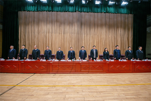 上午九時,會議正式開始。集團高管層領(lǐng)導(dǎo)徐鵬強、朱九洲以及穆乃杰、姜建魯、房海、吳杰、閆鵬、劉雁冰、楊成國、惠守江、孟憲禮、王建波出席大會并在主席臺就座。集團第八屆職工代表、列席代表,集團中層管理人員、2021年度受表彰的先進集體代表和先進個人以及總部全體人員共345人參加大會。