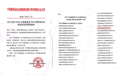 近日,中國建筑業(yè)協(xié)會(huì)建筑供應(yīng)鏈與勞務(wù)管理分會(huì)公布了2022年度建筑業(yè)誠信勞務(wù)企業(yè)評(píng)價(jià)結(jié)果,山東昌鴻建設(shè)有限公司被評(píng)為建筑業(yè)AAA級(jí)信用企業(yè)(分包商/供應(yīng)商/服務(wù)商)。自2019年至今已連續(xù)四年獲得全國3A級(jí)建筑誠信勞務(wù)企業(yè)殊榮。