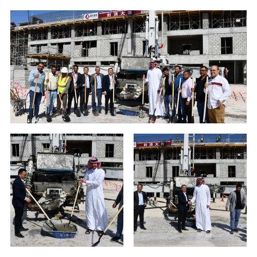 Salam 集團(tuán)CEO Abdul Salam Abu Issa、項(xiàng)目業(yè)主代表Husam、EAS總監(jiān)理工程師Abdelsami、昌大海外公司總經(jīng)理張立志,副總經(jīng)理馮金龍及主要參建人員出席儀式,共同見(jiàn)證3棟宿舍樓結(jié)構(gòu)封頂。