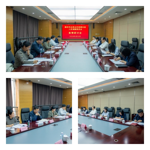 2024年4月26日上午,濰坊市總商會民商事糾紛人民調(diào)解委員會案情研究會在集團(tuán)二樓視頻會議室召開,集團(tuán)總裁朱九洲作為調(diào)解委員會副主任出席會議。出席會議的領(lǐng)導(dǎo)和專家還有濰坊市工商聯(lián)黨組成員、副主席、調(diào)解委員會主任譚述霞、濰坊市中級人民法院民一庭副庭長馮海玲、濰坊市中級人民法院立案一庭二級法官柴象坤、濰坊市中級人民法院研究室主任周偉、山東豪德律師事務(wù)所主任付興剛、山東豪德律師事務(wù)所合伙人、訴訟中心主任王曉倩、濰坊市稅務(wù)局一級行政執(zhí)法員鄭春偉、濰坊市自然資源和規(guī)劃局開發(fā)利用科一級主任科員劉永紅、濰坊市工商聯(lián)經(jīng)濟(jì)咨詢科副科長齊鳳濤。